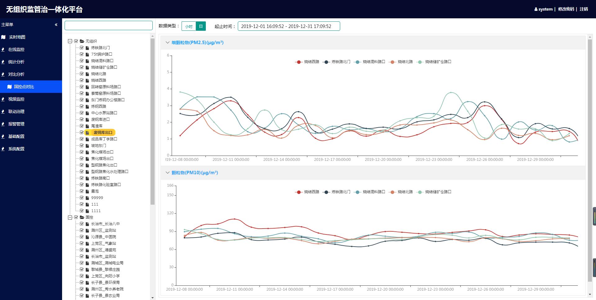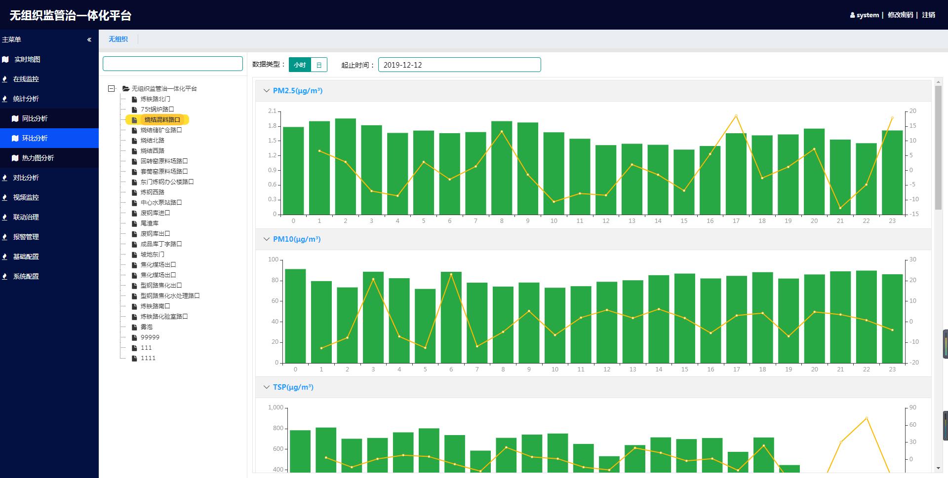 無組織排放源清單的展示,排放點(diǎn)實(shí)時(shí)數(shù)據(jù)、歷史數(shù)據(jù)展示及排名功能。