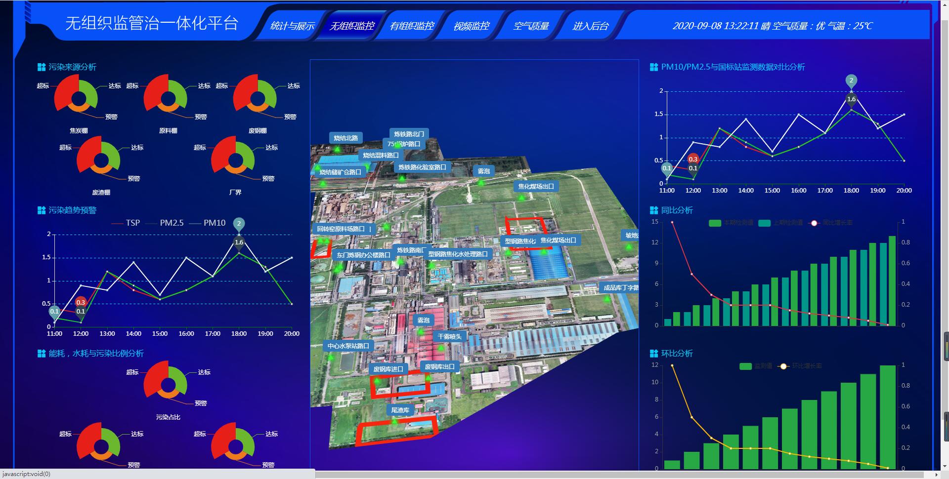 無組織排放管控治一體化平臺建設(shè)是一套集中管控平臺,可對企業(yè)廠區(qū)內(nèi)有組織、無組織等排放源中所有監(jiān)測、治理設(shè)備及其相應(yīng)數(shù)據(jù)進(jìn)行匯集并分析展示,并通過關(guān)聯(lián)分析、溯源分析、預(yù)警分析、智能管控等實(shí)現(xiàn)對污染源排放的精細(xì)化管控。綜合運(yùn)用智能分析技術(shù)進(jìn)行海量數(shù)據(jù)的匯總、統(tǒng)計(jì)、分析,并將分析結(jié)果以多維度的方式進(jìn)行綜合展現(xiàn),對無組織和有組織污染物的排放實(shí)行在線監(jiān)測、清潔運(yùn)輸設(shè)備進(jìn)行管理、對舞泡燈聯(lián)動治理進(jìn)行控制的一體化操作,為降低污染物濃度提供遠(yuǎn)程治理,為環(huán)境管理決策者提供數(shù)據(jù)支持。
