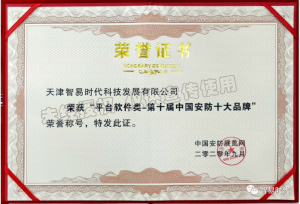 第十屆中國(guó)安防十大品牌榮譽(yù)證書