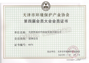 天津市環(huán)保產(chǎn)業(yè)協(xié)會(huì)會(huì)員證書