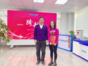 ? ? ? ? 盛總上臺致辭,給大家講述了公司從創(chuàng)立初期至今的發(fā)展歷程,讓我們了解到公司一步步發(fā)展壯大、成交額階梯式上漲、技術(shù)人才不斷增加、公司環(huán)境顯著改善是公司全體人員共同努力的結(jié)果。在接下來的環(huán)節(jié)中,由盛總、陳總和蔡總分別為專項工作突出員工頒獎。