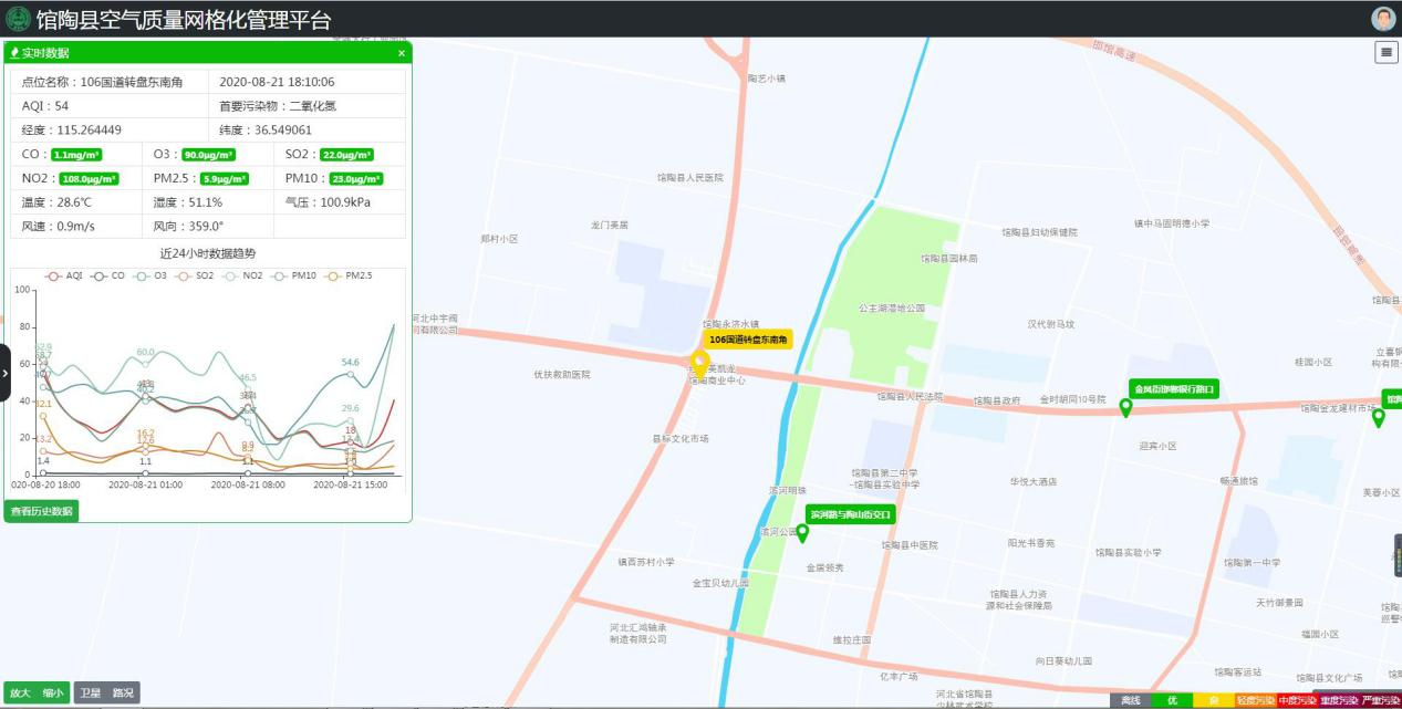 道路空氣質(zhì)量監(jiān)測系統(tǒng)是結(jié)合市道路交通、經(jīng)濟(jì)人口等現(xiàn)狀,通過科學(xué)合理地規(guī)劃環(huán)境質(zhì)量監(jiān)測產(chǎn)品,配合地理信息系統(tǒng)、數(shù)據(jù)算法專題等技術(shù),將傳統(tǒng)的靜態(tài)記錄以多樣化的地圖形式展現(xiàn)給用戶,實(shí)現(xiàn)了數(shù)據(jù)可視化,展示多樣化。最終實(shí)現(xiàn)精確測量、精準(zhǔn)預(yù)測、精密溯源、精妙控制,使得環(huán)境主管部門對道路交通環(huán)境要素的管理變得直觀、簡單和輕松。